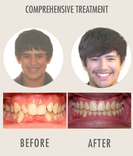 Below are some before and after images of some of Dr. Peralta’s actual patients, showing you the results of both comprehensive and interceptive treatment as well as treatment completed with the use of jaw surgery and Temporary Anchorage Devices (TADs).
